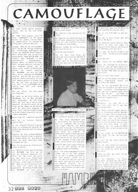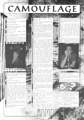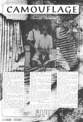 MARCUS MEYN: Früher hießen wir LICENT TECHNOLOGY, das war aber irgendwie schwer auszusprechen, man konnte es sich nicht merken. Und da gibt's ein Lied von YMO, das CAMOUFLAGE heißt. Heiko kam eines Tages damit an, das war 1983 bei unserem ersten großen Konzert, und meinte, daß er mit den anderen schon gesprochen hätte und das alle dafür wären, die Gruppe umzubennen.