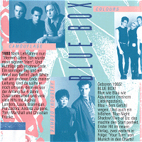 Geboren 1985! BLUE BOX! Blue wie Blau wie Aquamarin (meinem Lieblingsstein). Blau - dem Gefühl wegen. Und auch ein bißchen "Blue Night Shadow"/Two Of Us: das machte den Start perfekt. Erster Hit im neuen Verlag, zwei weitere in Folge: "Your Turn" von Munich in den Charts!