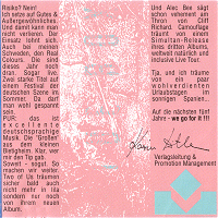 Man muß PUR einfach zu den ganz Großen zählen, wenn es darum geht, gute deutsche Texte musikalisch umzusetzen. Dies stellten auch schon andere Kenner fest, wie durch Auszeichnungen z.B. dem "Bundesrockpreis 1987" oder der "Goldenen Europa 1988" zu beweisen ist! Die erste Platinplatte konnte Hartmut Engler gerade für seinen Erfolgstext "Tiefer" (interpretiert von Peter Maffay) entgegennehmen - wollen wir hoffen, daß für PUR dies bald kein Traum mehr sein wird.