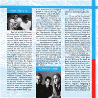 CAMOUFLAGE etablierte sich innerhalb der letzten beiden Jahre auf dem Weltmarkt der Musik als beste deutsche Newcomer-Pop-Band mit beachtlichen Absatz-Stückzahlen, Anerkennung und Erfolg auch in den USA (2xNr. 1 der "Dance Charts" mit "Great Commandment", Billboard Hot 100 LP + Single Chart-Platzierungen. Beim Trendsetter WDRE auf Long Island rangierte CAMOUFLAGE durch Hörer-Wahl auf Platz 3 hinter Cure & Depeche Mode. Auch in asiatischen Staaten wie Taiwan, Singapur, Hongkong & Korea gehörten CAMOUFLAGE zu den beliebtesten Pop-Formationen. Die letzte Single "Love Is A Shield" hielt sich mehr als ein halbes Jahr in den deutschen Charts - das Album "Methods Of Silence" verdoppelte den Absatz zur ersten LP "Voices & Images" und wurde mittlerweile in 27 Ländern veröffentlicht.