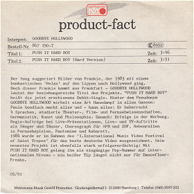 Doch dieser Frankie kommt aus Frankfurt - GOODBYE HOLLYWOOD lautet der beziehungsreiche Titel des Projekts. "PUSH IT HARD BOY" heißt die jetzt erschienene Debüt-Single. Hinter dem Pseudonym GOODBYE HOLLYWOOD wirbelt eine Art Hansdampf in allen Gassen: Paule Goodluck macht alles und - kann alles: Er beherrscht 4 Sprachen, studierte Theater-, Film- und Fernsehwissenschaften, Germanistik, Kunst und Philosophie. Danach: Erfolge in der Werbung, Regie-Aufträge bei Live-Präsentationen, Live- und TV-Auftritte als Sänger und Tänzer, Choreograph für SFB und ZDF, Nebenrollen in Fernsehspielen, Pantomime und Kabarett.